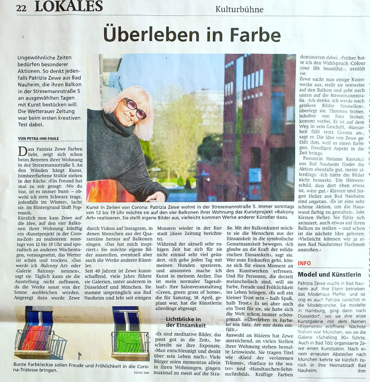 | 9. juli 2020 Unsere Hinterhofgalerie öffnet zum artweekend am Freitag , 31. 7 . 2020 ab 14 uhr … sa / so von 14 – 19 uhr HINTERHOFGALERIE im „ creme de la creme „ Fussgängerzone in Bad Nauheim Freitagabend um 18 uhr spielen die „ singing sixties „…. Herzlich Willkommen ! Art will save the world ----Art will save our soul ! Ausgestellt werden Objekte , Mixedmedia, Fotografie u Malerei von kosynus, jürgen wegener u patrizia zewe ![]() ![]() ![]() ![]() |